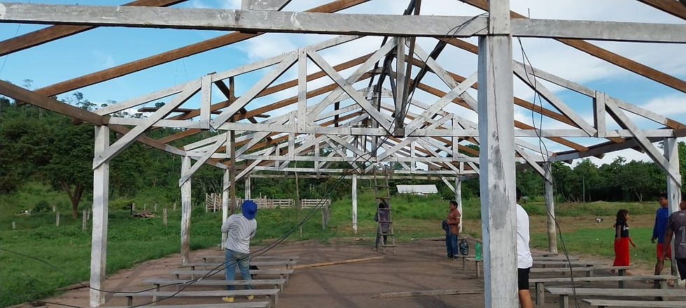 Além das celebrações, o trabalho de construção de templos nas aldeias também tem avançado. Na aldeia Ikolen 1, os irmãos continuam empenhados na construção do templo, restando apenas a conclusão das paredes e a colocação da cerâmica no piso. Já nas aldeias Tucumã e Castanheira, as construções também foram iniciadas. As comunidades já possuem telhas e madeira para o telhado, faltando agora a instalação do piso.